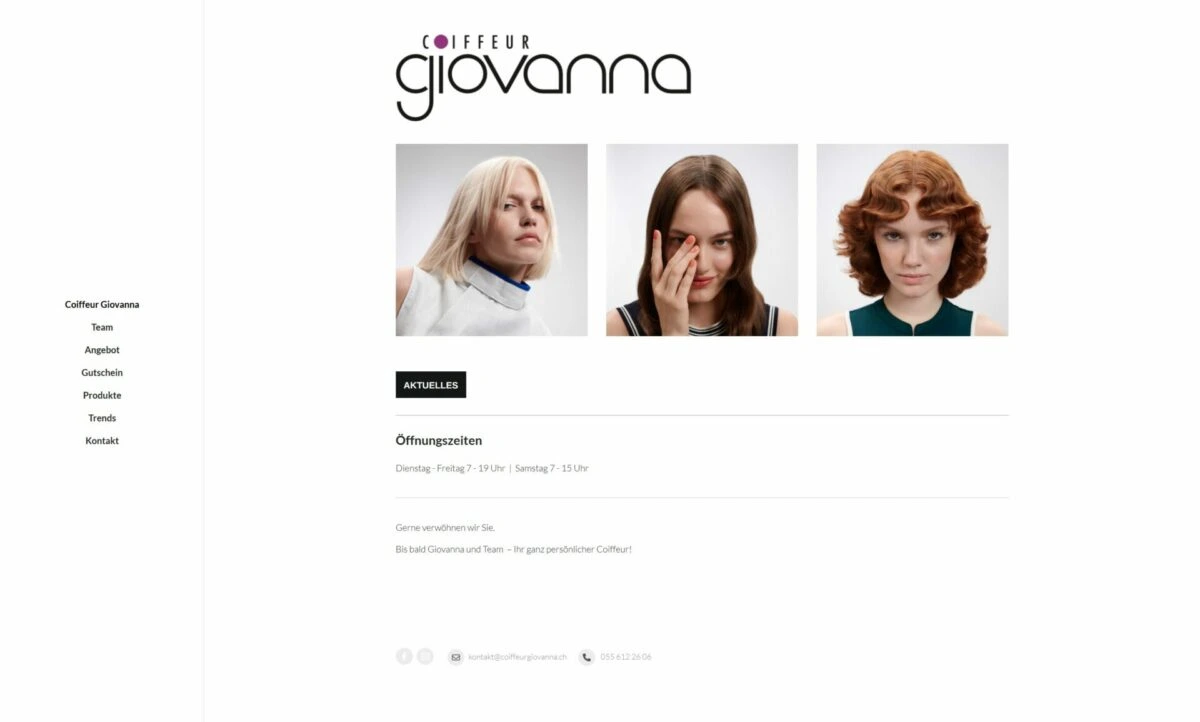 Coiffeur Giovanna in Mollis ist ein etablierter und stilvoll geführter Coiffeursalon mit treuer Stammkundschaft. Bisher fehlte jedoch eine professionelle Onlinepräsenz – eine alte Website, kaum Sichtbarkeit auf Google und kein einheitliches visuelles Auftreten. Auch Tools zur Erfolgsmessung, wie Google Analytics, waren nicht vorhanden.